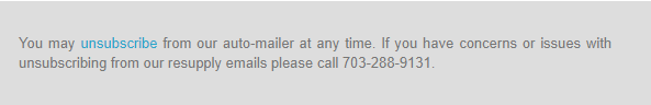 Answer: You may opt-out at any time. You may call 888-276-3237 (Option 1), email resupply@qualitydme.com, or unsubscribe at the bottom of each Resupply Program email notification. Look for the following banner.